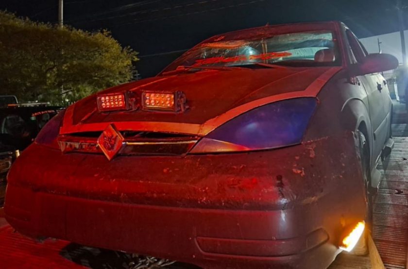 Derivado de una falta al reglamento de tránsito se realizó la inspección de un vehículo Ford color negro. Durante la intervención, se detectó a uno de los tripulantes portando equipo balístico, por lo que se efectuó una revisión preventiva.