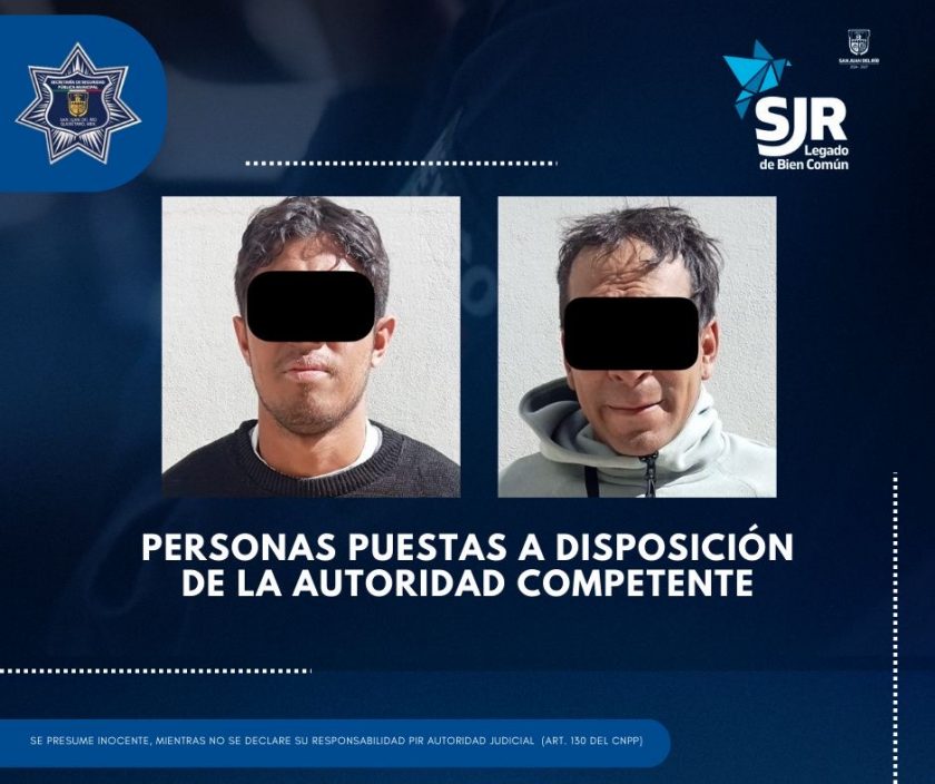 • Elementos de la Secretaría de Seguridad Pública Municipal de San Juan del Río realizaron la detención de dos personas por los delitos mencionados.