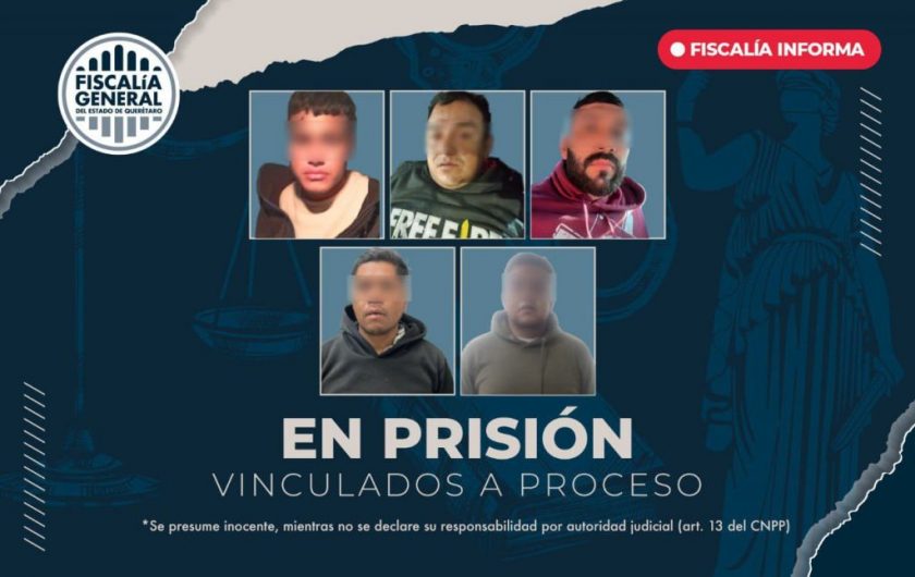 La Fiscalía General del Estado de Querétaro obtuvo la vinculación a proceso contra cinco personas a quienes se les imputaron los delitos de homicidio doloso y lesiones dolosas.