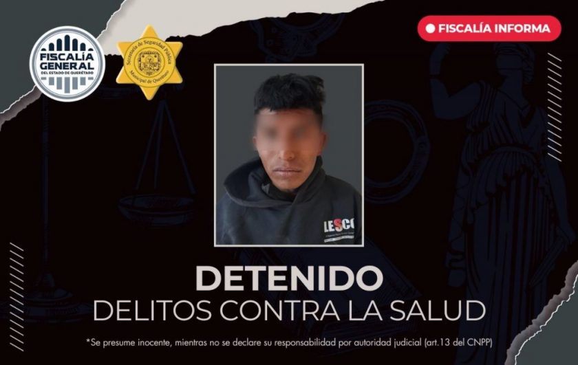La Fiscalía General del Estado de Querétaro, a través de la Unidad Especializada en la Investigación de Narcomenudeo, cumplimentó una orden de aprehensión en contra de el “Cuco”, por delitos contra la salud en su modalidad de narcomenudeo, por posesión simple.