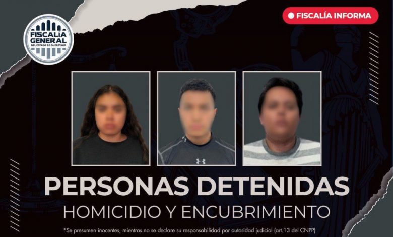 La Fiscalía de Querétaro informa que elementos de la Policía de Investigación del Delito (PID) cumplimentaron una orden de aprehensión contra de una mujer y un hombre, por el delito de Homicidio Calificado y Robo Específico a Casa Habitación; así como contra otra mujer, por el delito de Encubrimiento por Favorecimiento.