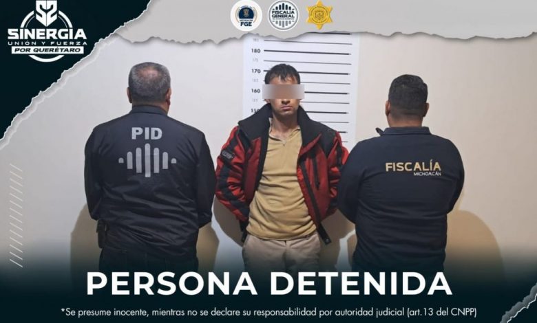 En el marco de la estrategia Sinergia por Querétaro, la Fiscalía General del Estado de Querétaro, a través de la Policía de Investigación del Delito (PID), en coordinación con la Fiscalía General del Estado de Michoacán y la Secretaría de Seguridad Pública Municipal de Querétaro, cumplimentó una orden de aprehensión en contra de “El Pista”, por su probable autoría en el delito de homicidio calificado, cometido en Michoacán.