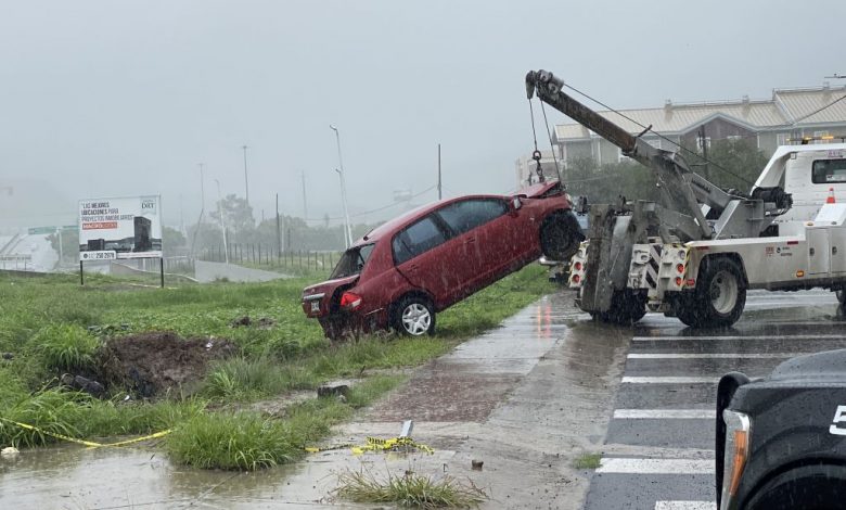 El primer percance ocurrió durante las primeras horas de este lunes, sobre el kilómetro 21 del Libramiento Junípero Serra, en dirección a Paseo de la República. El conductor de un vehículo Nissan Tiida con placas de la Ciudad de México perdió el control del volante, derrapó sobre el asfalto mojado y terminó cayendo en la cuneta que divide carriles centrales de laterales.