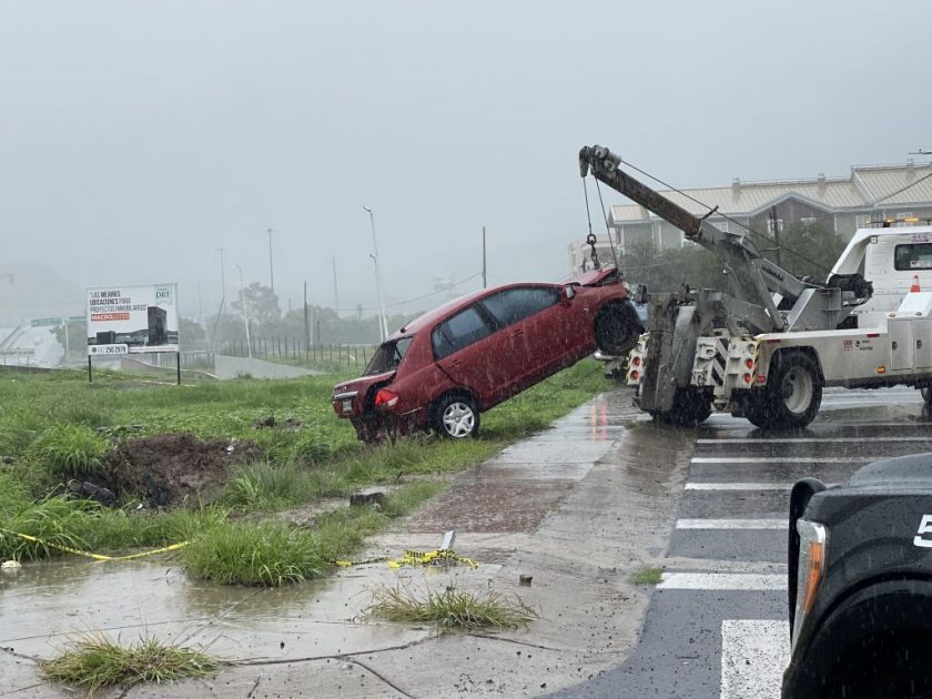 El primer percance ocurrió durante las primeras horas de este lunes, sobre el kilómetro 21 del Libramiento Junípero Serra, en dirección a Paseo de la República. El conductor de un vehículo Nissan Tiida con placas de la Ciudad de México perdió el control del volante, derrapó sobre el asfalto mojado y terminó cayendo en la cuneta que divide carriles centrales de laterales.