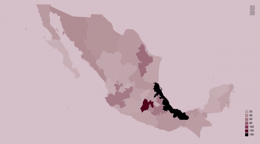 De los 2,463 municipios que hay en el país, en 404 municipios hubo casos de feminicidio, mientras que 2,059 demarcaciones no registraron casos de este delito.