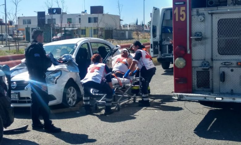 Policía Municipal de la capital toma conocimiento del accidente y Bomberos de Qro, realizaron el rescate del lesionado que quedó atrapado entre los fierros de su unidad, debido a la magnitud del choque.