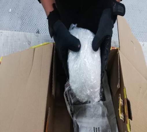 Al abrir el empaque se halló una bolsa de plástico con una sustancia granulada con las características del narcótico, el cual fue puesto a disposición de la Fiscalía General de la República, donde se dará seguimiento a las investigaciones que correspondan.