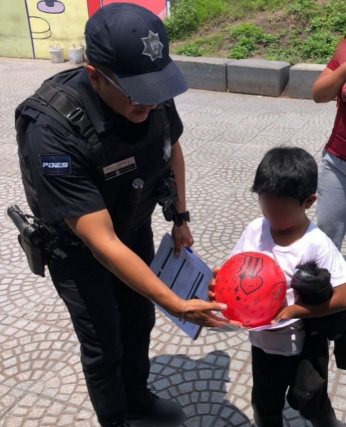 Policías Estatales fueron alertados por un ciudadano sobre la presencia de un menor de edad que se encontraba solo y llorando en las inmediaciones de avenida Constituyentes, en la colonia Centro.