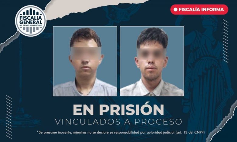 La Fiscalía General del Estado de Querétaro obtuvo la vinculación a proceso contra dos personas por los delitos de homicidio calificado y homicidio calificado en grado de tentativa. Los hechos ocurrieron el 1 de julio de 2023 en la colonia Satélite, cuando los detenidos ingresaron armados a un domicilio y dispararon contra tres hombres, causando la muerte a dos de ellos y lesionando al tercero.
