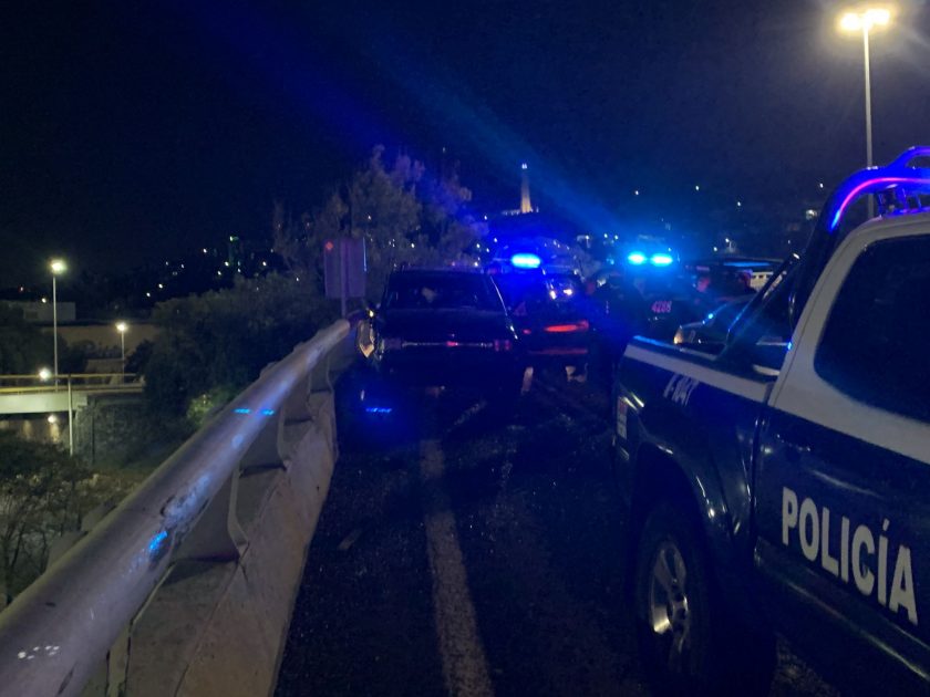 Después de que el conductor optara por volver a incorporarse a centrales de Bernardo Quintana y después el Junípero Serra a la altura de Álamos, pero en sentido contrario, fue cuando terminó por impactarse, alcanzando a golpear una de las unidades de la policía estatal, donde afortunadamente ningún oficial resultó lesionado.