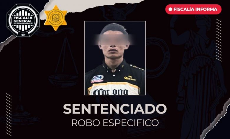 La Fiscalía General del Estado de Querétaro obtuvo sentencia condenatoria en contra de Erick “N”, por el delito de robo específico, por hechos ocurridos en un establecimiento comercial ubicado en la colonia Centro del municipio de Querétaro.