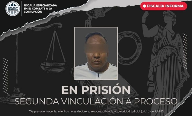 La Fiscalía Especializada en el Combate a la Corrupción obtuvo una segunda vinculación a proceso en contra de un hombre, dentro del periodo de investigación complementaria del proceso que enfrenta, tiempo en el que el imputado se encontraba con la medida cautelar de prisión preventiva.