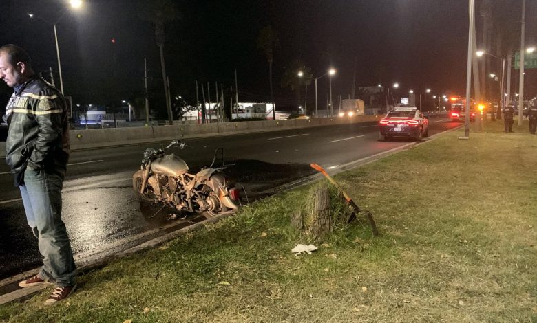 Al no poder esquivar el señalamiento, este se atoró por debajo de la motocicleta, lo que provocó fricción con el pavimento y acto seguido, comenzar a brincar chispas, lo que ocasionó que la motocicleta comenzara a incendiarse.