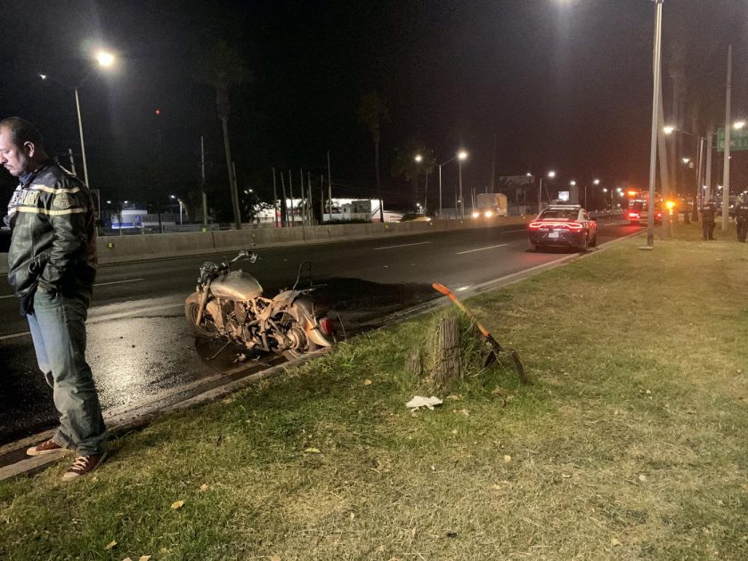 Al no poder esquivar el señalamiento, este se atoró por debajo de la motocicleta, lo que provocó fricción con el pavimento y acto seguido, comenzar a brincar chispas, lo que ocasionó que la motocicleta comenzara a incendiarse.