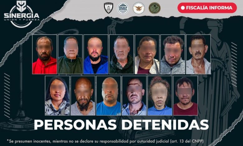 La Fiscalía General del Estado detuvo a 13 personas durante la realización de cateos en 18 domicilios ubicados en los municipios de San Juan del Río, Amealco de Bonfil y Huimilpan; lo anterior como parte de la estrategia Sinergia por Querétaro, derivado de carpetas iniciadas por delitos contra la salud.