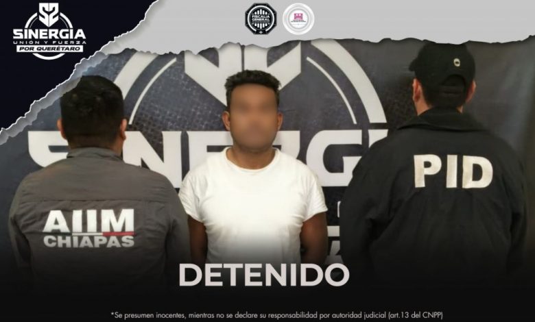 • Detención realizada mediante Sinergia entre Fiscalías del estado de Querétaro y Chiapas
