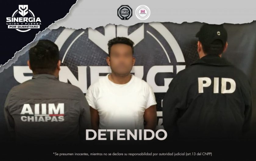 - Detención realizada mediante Sinergia entre Fiscalías del estado de Querétaro y Chiapas