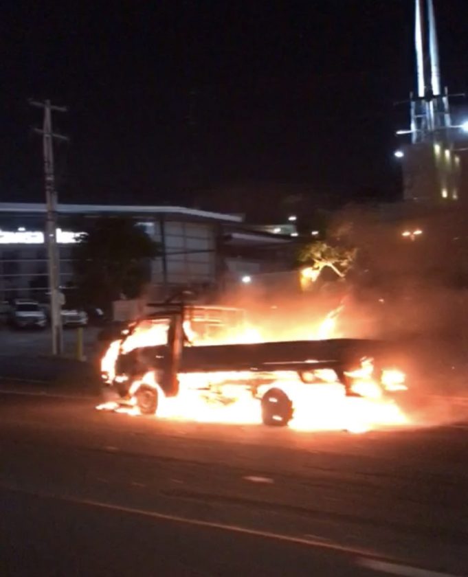 Todo parece indicar que el fuego se originó por un corto circuito en el motor, lo que inició el fuego en la unidad de la marca Isuzu tipo plataforma que circulaba sobre el Blvd Bernardo Quintana en dirección a los Arcos.