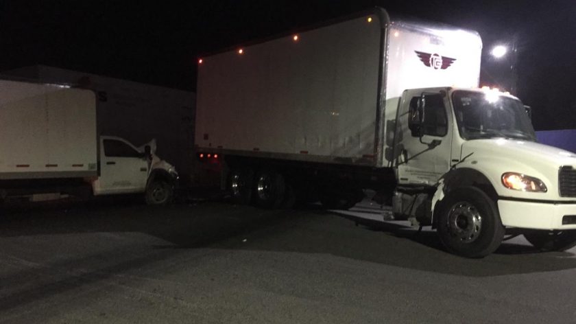 La camioneta de 3 1/2 toneladas presentó una falla mecánica en los frenos y no alcanzó a detener su marcha cuando el camión tipo rabón, intentaba incorporarse al parque industrial. Para fortuna no hay personas lesionadas, únicamente los cuantiosos daños materiales