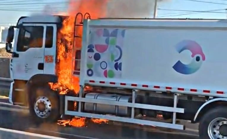 Un camión recolector de basura se incendió la tarde de este lunes sobre la carretera a Tlacote, a la altura de Agrogen, en el municipio de Corregidora.