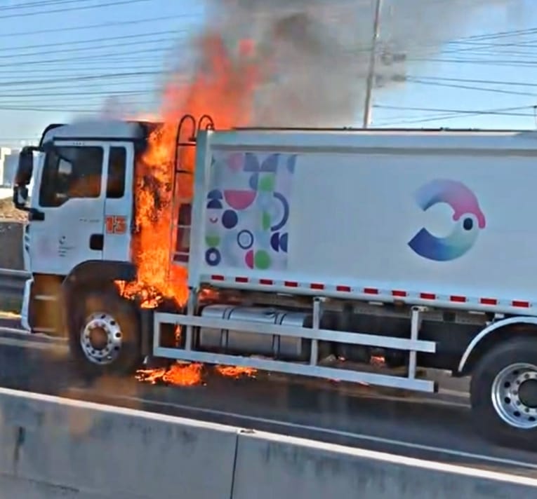 Un camión recolector de basura se incendió la tarde de este lunes sobre la carretera a Tlacote, a la altura de Agrogen, en el municipio de Corregidora.