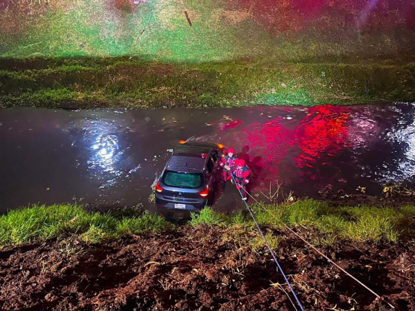Uno de los más relevantes fue la caída de un automóvil Seat Ibiza con tres personas a bordo al dren El Arenal.