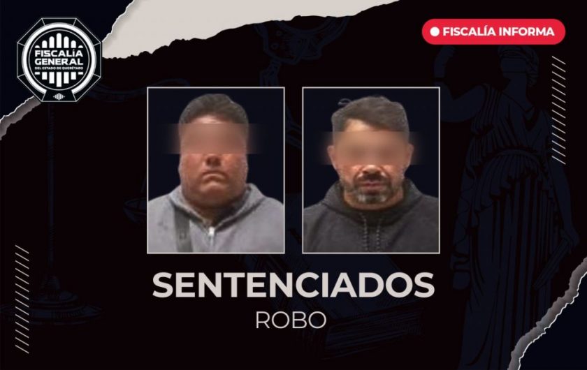 La Fiscalía General del Estado de Querétaro obtuvo sentencia condenatoria en contra de dos personas por el delito de robo, derivado de hechos ocurridos el 28 de septiembre de 2025, en la colonia Jardines de la Hacienda, en el municipio de Querétaro.