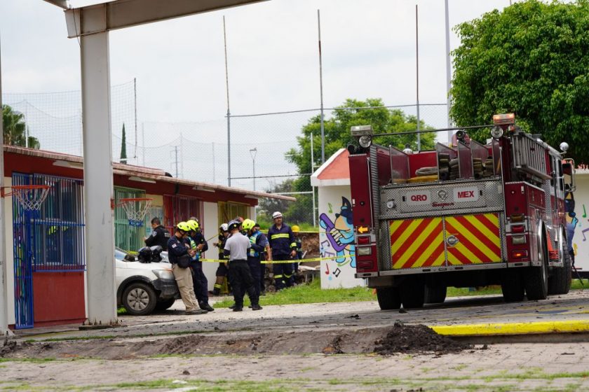 Elementos del H. Cuerpo de Bomberos de Querétaro, con equipo especializado de rescate estructural, permanecen en el sitio a la espera del arribo de servicios periciales de la Fiscalía General del Estado, quienes realizarán el levantamiento del cuerpo y la recolección de indicios.
