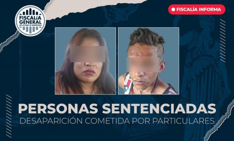 La Fiscalía General del Estado obtuvo sentencia condenatoria de 46 años, 10 meses y 15 días de prisión para dos personas, al acreditarse su responsabilidad en el delito de desaparición cometida por particulares agravada, por hechos ocurridos el 28 de enero de 2024 en el municipio de El Marqués.