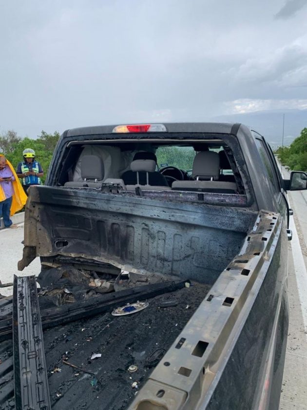 Al arribo de personal paramédico al lugar de los hechos, se confirmó que durante su manipulación, uno de estos artefactos cayó en la parte posterior de una camioneta que acompañaba al contingente. La unidad resultó con daños materiales como consecuencia de que se consumió en su totalidad la brazada de fuegos pirotécnicos que transportaba.