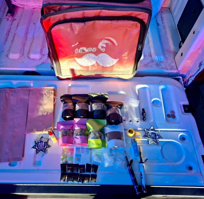 Tras marcarle el alto e intentar entablar diálogo, el individuo reconoció portar droga, por lo que se le practicó una inspección preventiva. En una mochila color naranja, del tipo utilizado para entregas a domicilio, fueron localizadas diversas sustancias con características de narcóticos.