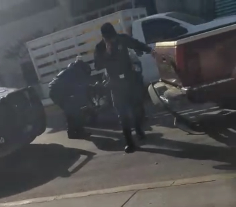 En el lugar se encuentra un fuerte movimiento policial ya que los sujetos al evitar ser detenidos, detuvieron su marcha de manera abrupta para ocasionar que uno de los motociclistas que los perseguía, se impactara contra la unidad en la parte trasera y quedara derribado de la unidad.