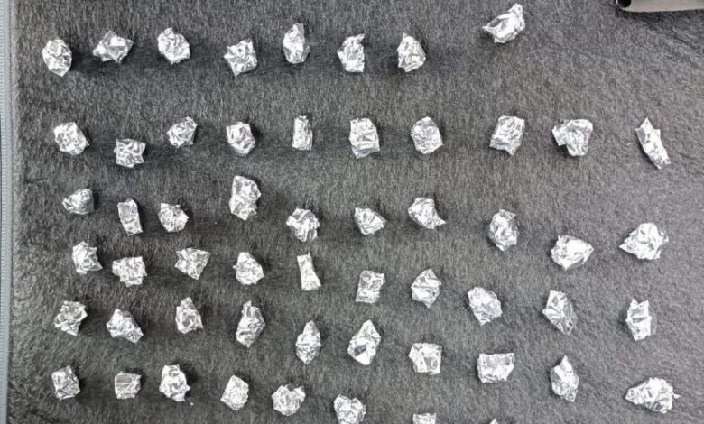 Tras darle alcance, se realizó la inspección de los objetos, los cuales contenían envoltorios de aluminio con sustancia granulada de características similares al narcótico.