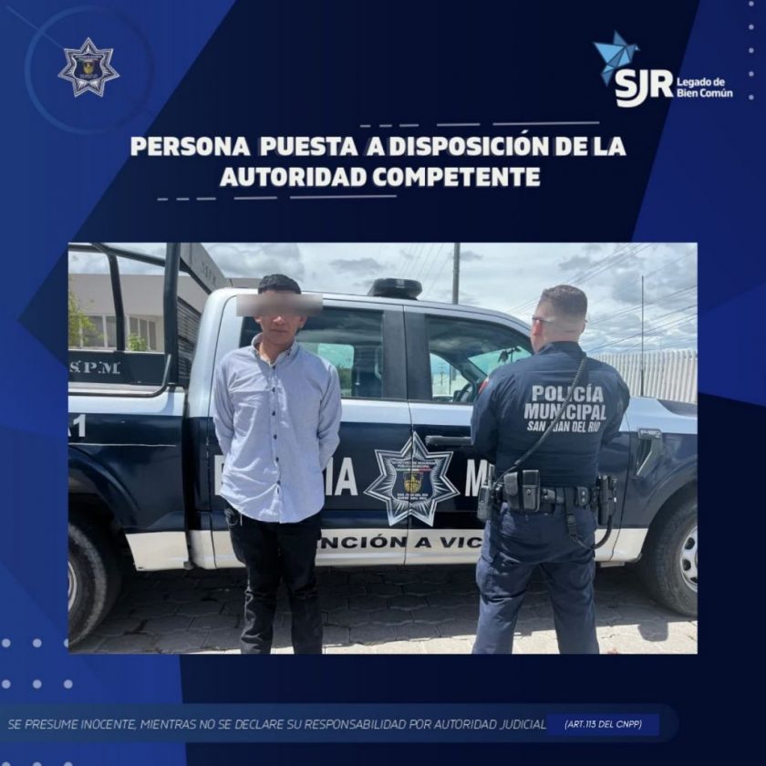 Elementos de la Secretaría de Seguridad Pública Municipal de San Juan del Río (SSPM-SJR), realizaron la detención de un masculino por su presunta participación en un hecho de violencia familiar, registrado en un domicilio ubicado en el Barrio de la Concepción.