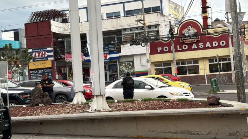 Desde las cámaras de videovigilancia fue detectado un vehículo Honda Civic rojo con reporte de robo vigente, escoltado por un auto Toyota Corolla blanco, sobre Avenida Cimatario en dirección a Luis Vega y Monroy.