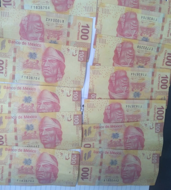 Durante un recorrido de vigilancia y disuasión de actos ilícitos localizaron a dos personas a bordo de un vehículo quienes mostraron una con actitud evasiva, siendo llamados a revisión Armando “N” de 25 años de edad, alias el “Gasper” y Benito “N” de 40 años de edad, quien durante la revisión se les localizó dentro de sus pertenencias 13 billetes con denominación de 100 pesos apócrifos, así como una bolsas transparentes y en su interior sustancia cristalina con características similares a la metanfetamina.