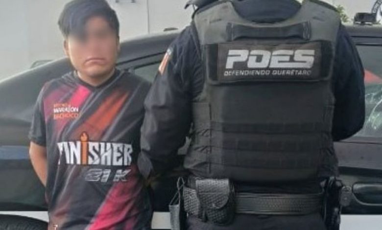Durante recorridos preventivos en el Centro Histórico, Policías Estatales fueron abordados en avenida Zaragoza al cruce con Corregidora, en la capital, por un ciudadano que solicitó apoyo, luego de que un sujeto lo amenazara con un arma blanca para despojarlo de sus pertenencias.