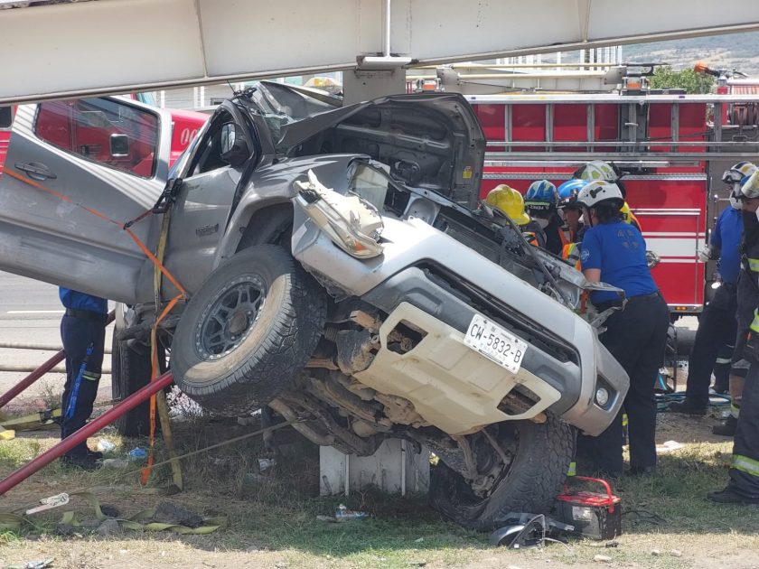 El conductor de una camioneta de la marca Toyota, tipo Tacoma con placas de circulación para la entidad de Chiapas, resultó gravemente lesionado al impactar su unidad contra la base del puente peatonal ubicado en la comunidad referida.