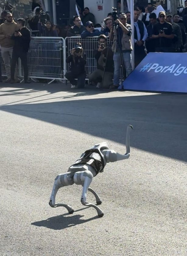 El dispositivo robótico, con forma de perro y equipado con sensores y herramientas de monitoreo, fue mostrado públicamente por primera vez durante el contingente de seguridad. Su integración, según funcionarios presentes, forma parte de la estrategia para incorporar soluciones innovadoras en el patrullaje de espacios públicos.