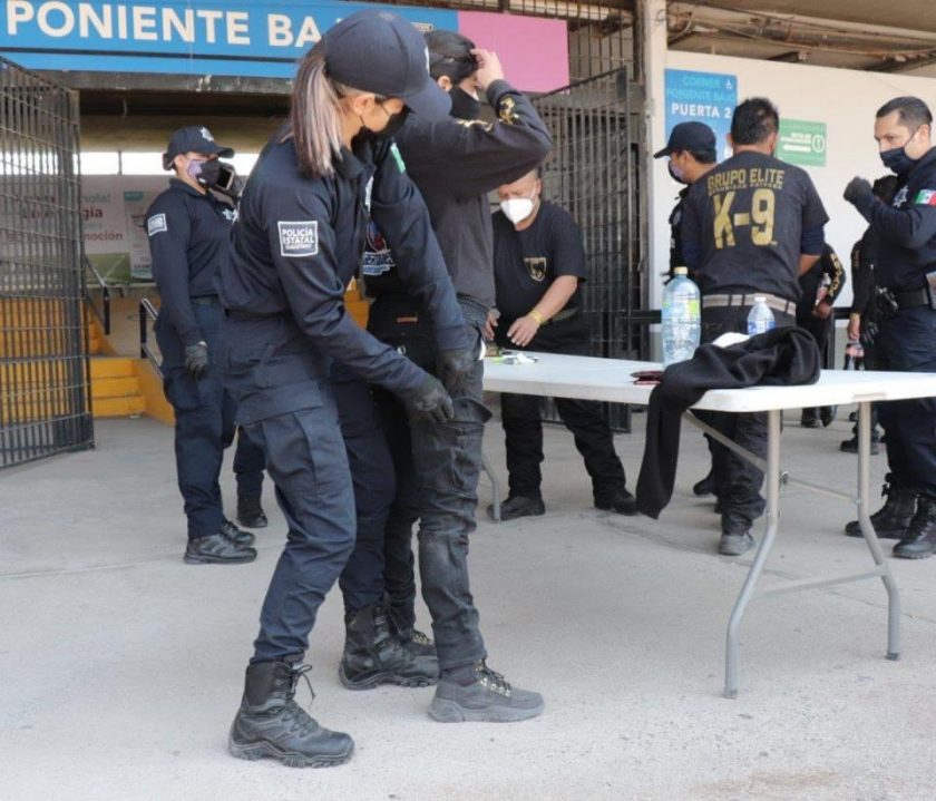 Elementos de la Policía Estatal, con apoyo de personal médico de la Secretaría de Seguridad Ciudadana, llevaron a cabo el proceso de inspección a elementos de seguridad privada, previo al partido Gallos Blancos Vs Mazatlán.