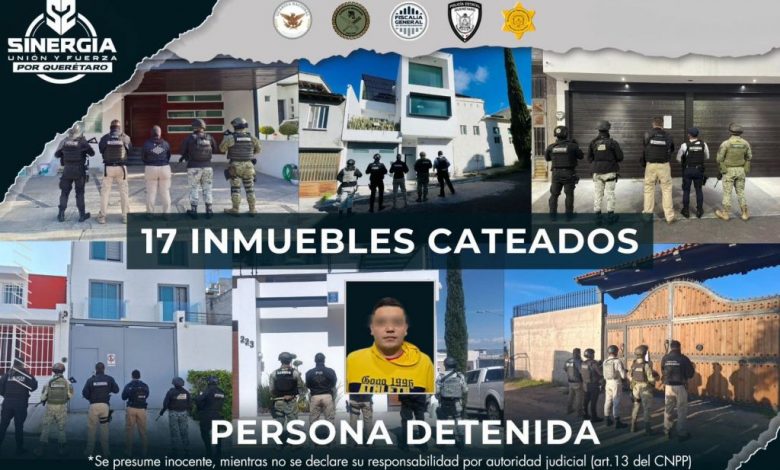 La Fiscalía General del Estado de Querétaro, en sinergia con la Guardia Nacional, la Secretaría de la Defensa Nacional (SEDENA), la Policía Estatal (POES),y la Secretaría de Seguridad Pública Municipal de Querétaro (SSPMQ), realizó 17 diligencias de cateo simultáneas como parte del operativo Sinergia por Querétaro.