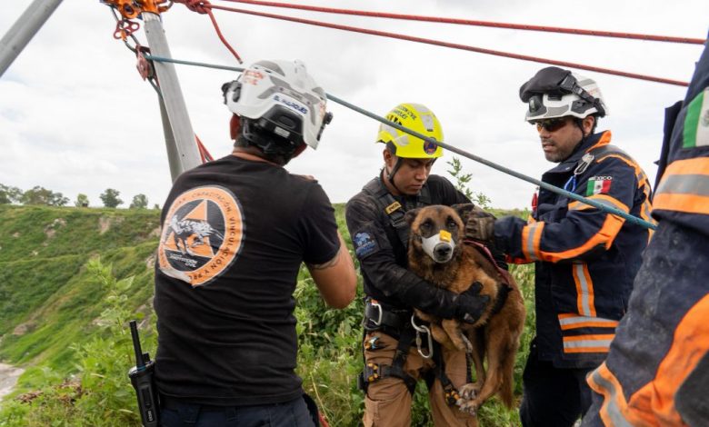Un perro fue rescatado este lunes 1 de septiembre en un barranco del Ejido Jesús María, en El Marqués, durante un operativo realizado por Protección Civil municipal y el Instituto de Protección Animal.