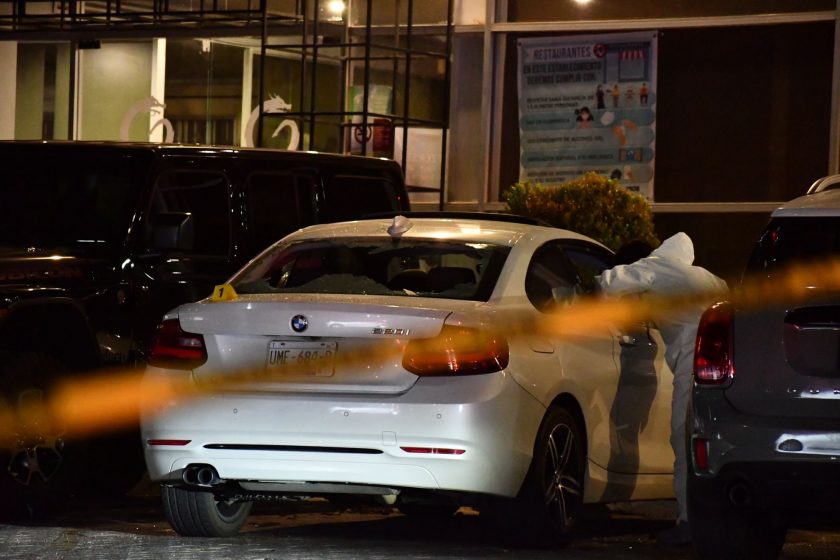 Clientes reportaron al número de emergencias la riña y las detonaciones de arma de fuego, en contra de un vehículo BMW en color blanco con placas de circulación para Querétaro, el cual quedó estacionado con daños en el medallón trasero, espejo lateral y parte de la carrocería.