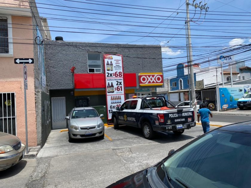 Dos sujetos con arma de fuego lograron obtener botín de una tienda de conveniencia ubicada en 6ta de Laurel, colonia El Laurel en la capital de Querétaro.