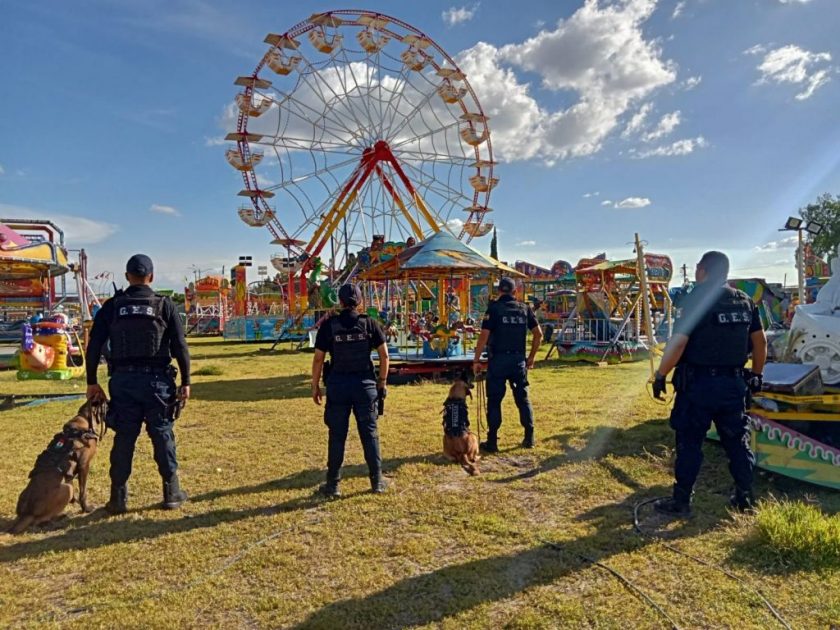 Durante las festividades en honor a Nuestra Señora de Los Ángeles, se desplegó un estado de fuerza conformado por elementos de diferentes grupos especializados, quienes realizaron recorridos pie tierra, vigilancia en la zona comercial y de juegos mecánicos, así como puntos de inspección vehicular.