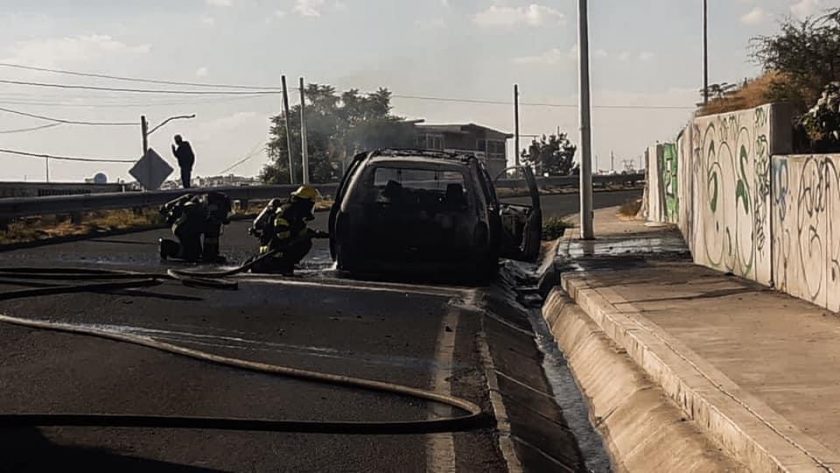 Servicios de emergencia atendieron el incendio de una camioneta tipo Voyager, con placas para Querétaro, donde afortunadamente no hubo personas lesionadas, únicamente la pérdida total de la unidad.