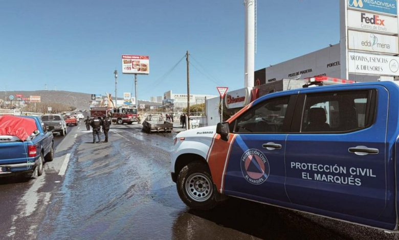 Elementos de la Coordinación de Protección Civil del municipio de El Marqués atendieron el incendio de un vehículo registrado sobre el Anillo Vial Fray Junípero Serra, a la altura del fraccionamiento La Pradera.