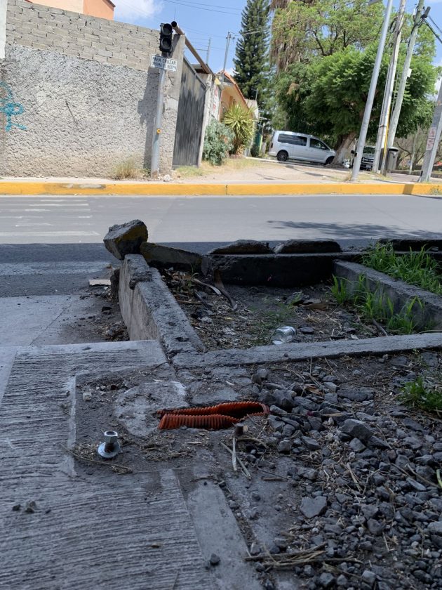 Personal de la secretaria de Movilidad corroboró que el poste que se encontraba en esa ubicación fue desprendido, además de confirmar el faltante de 10 metros aproximadamente de cable y el ‘push botón’ que se encuentra en ese tipo de poste, ascendiendo el monto de lo robado a poco más de 50 mil pesos.