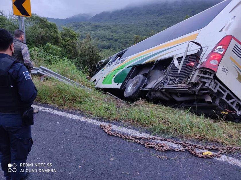 Elementos de seguridad pública municipal y protección civil de Landa de Matamoros, respondieron al llamado de emergencia, dinde se informó la salida de camino de un autobús de la línea Coordinados, sobre el kilómetro 196 de la carretera San Juan del Río Xilitla.