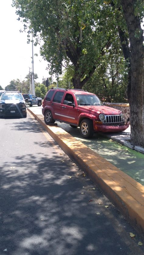 Este medio día, la conductora de una camioneta tipo Jeep, perdió el control del volante en Avenida Universidad antes de llegar a Estío, terminó dentro de la ciclovía e impactandose contra un árbol, afortunadamente no resultó lesionada.